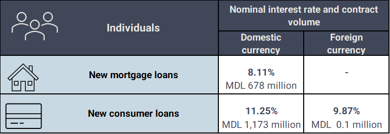 The volume of new loans granted to individuals and the nominal interest rates are reflected in the table below.