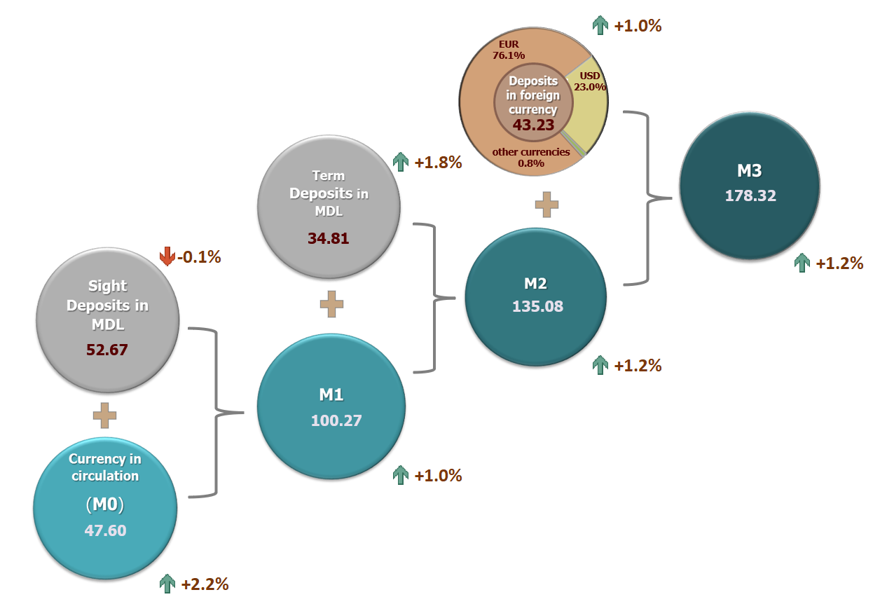 6. Money supply M3 includes M2 money supply and residents’ foreign currency deposits converted in MDL.