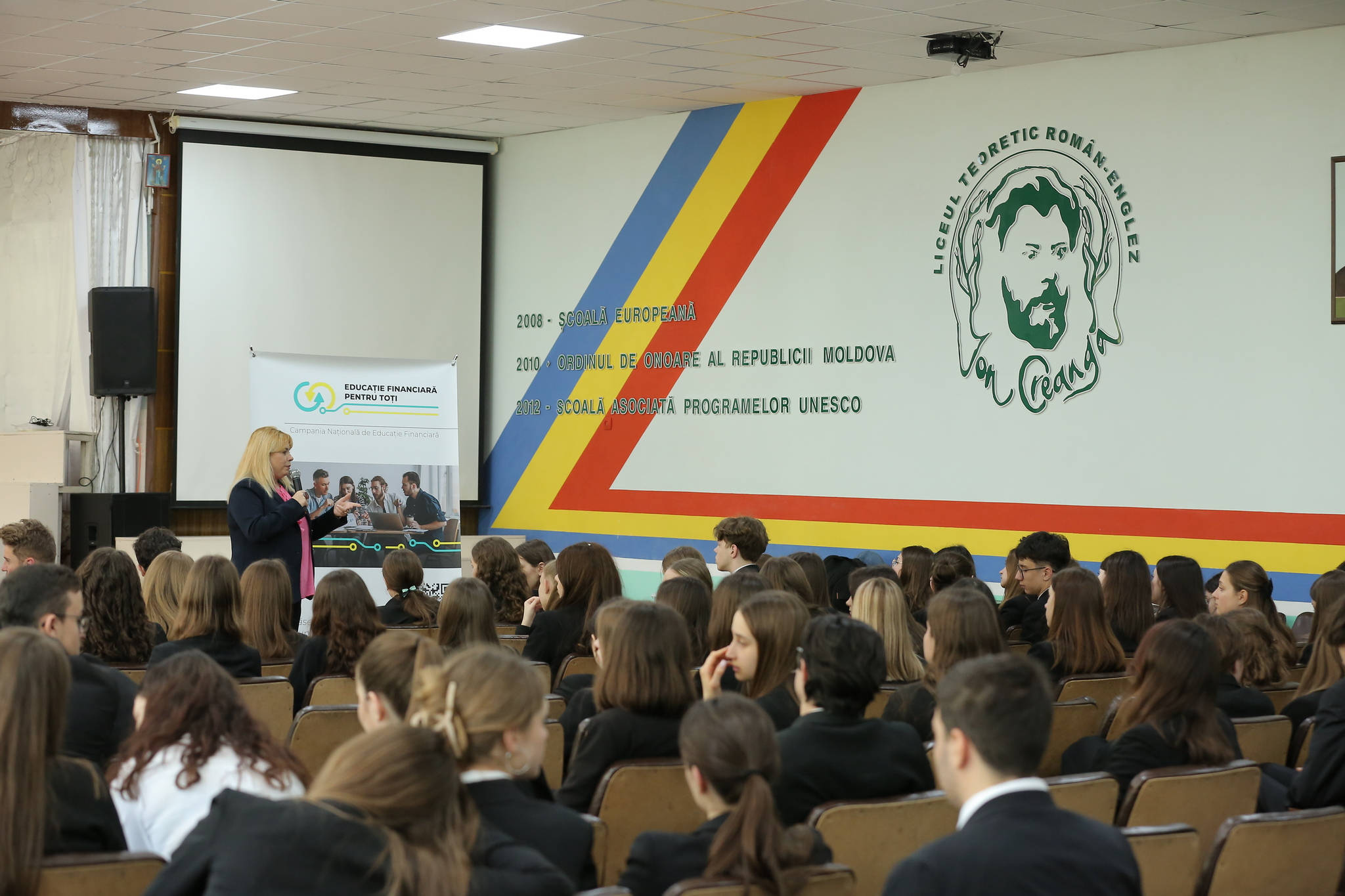 The Governor of the National Bank of Moldova, Anca Dragu, participated today in an interactive financial education session at the IP "Ion Creanga" Theoretical High School in Chisinau.
