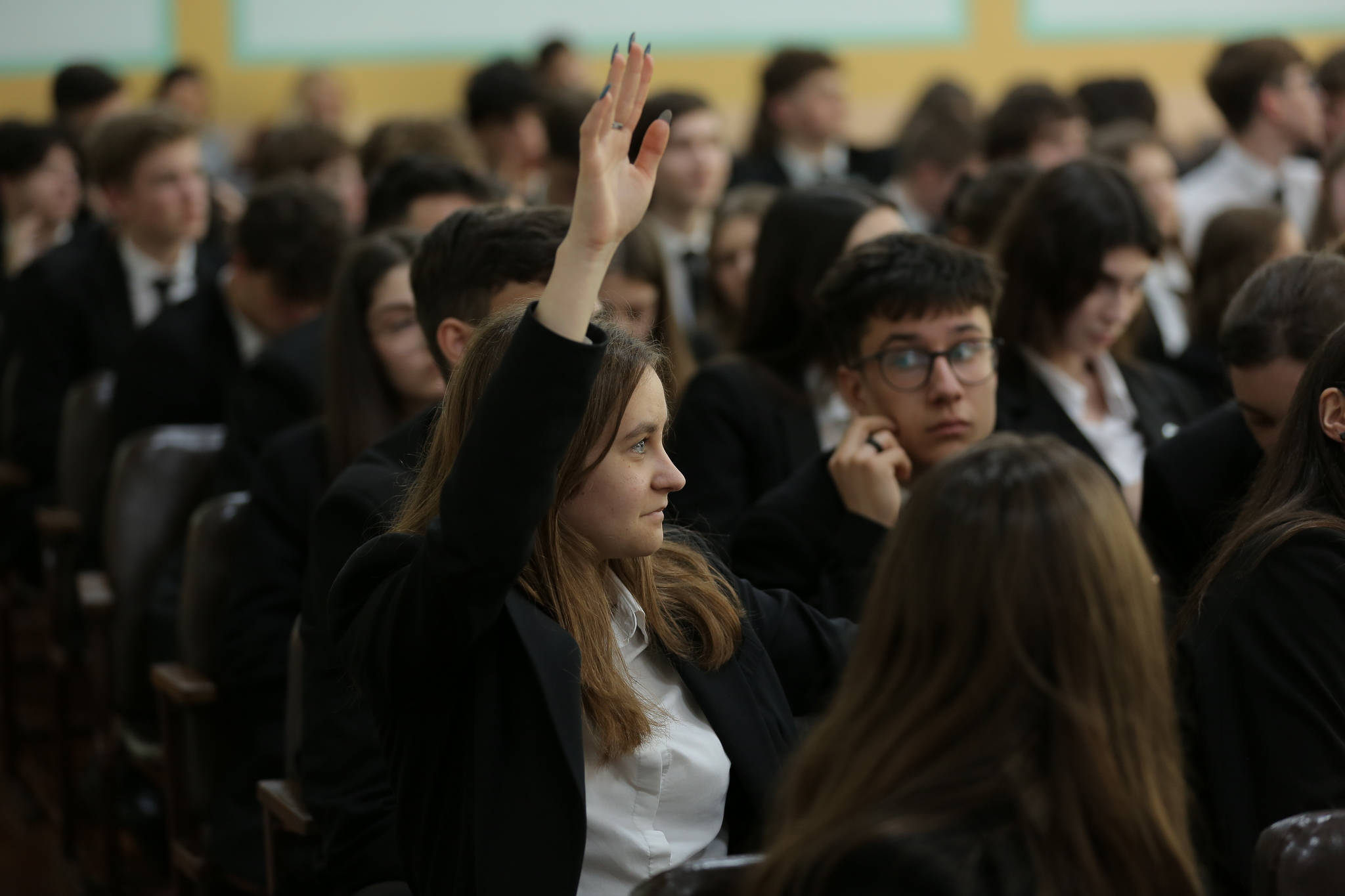 A financial education class with NBM Governor, Anca Dragu, at a high school in the capital