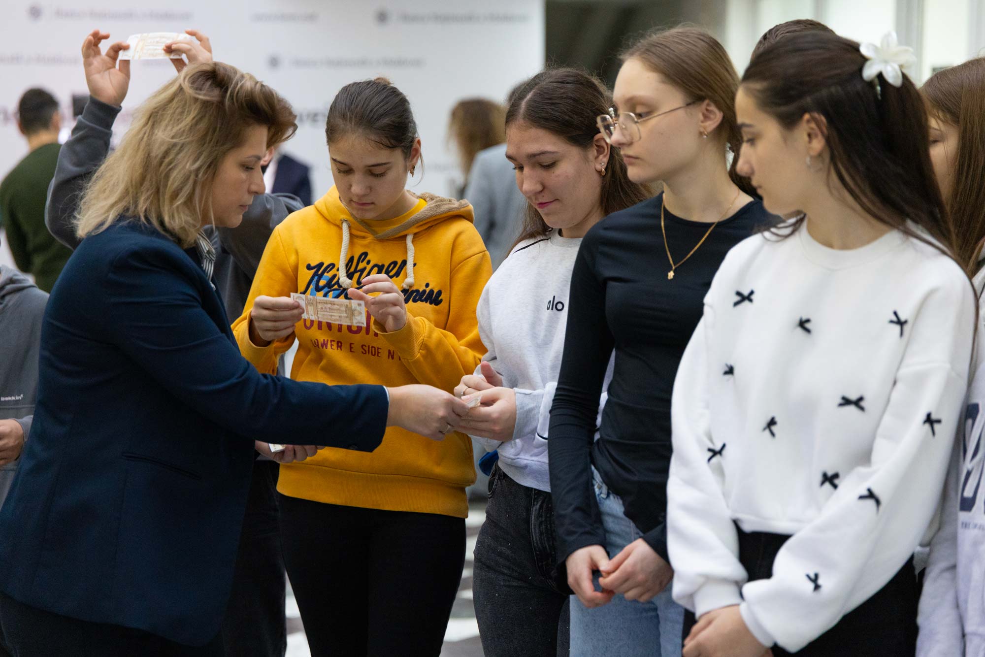 During the practical sessions, children and young people identified the security features of Moldovan lei banknotes, learning interesting information about the stages of their modernisation.
