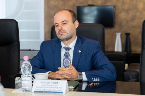 The Governor of the National Bank of Moldova, Anca Dragu, together with the Deputy Governor of the NBM, Constantin Șchendra, held a meeting with representatives of the National Bank of Romania: Mr. Cristian Popa, member of the Board of Directors, and Mr. Ionel Nițu, Director of the Issuance, Treasury, and Cash Department.