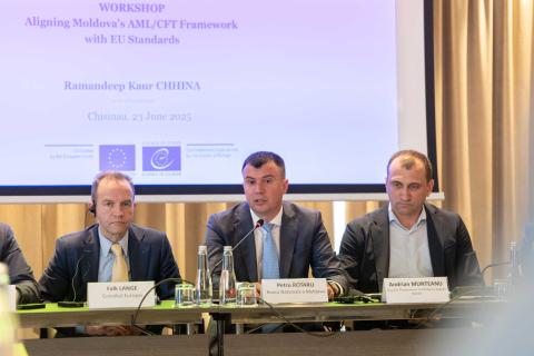 The First Deputy Governor of the National Bank of Moldova (NBM), Petru Rotaru, participated in the opening of the workshop "Aligning Moldova's AML/CFT framework to EU standards", organised on 23 June 2025. The event took place within the framework of the Partnership for Good Governance programme of the European Union and the Council of Europe, which aims to support the Eastern Partnership countries in preventing and combating economic crime at national and regional levels.