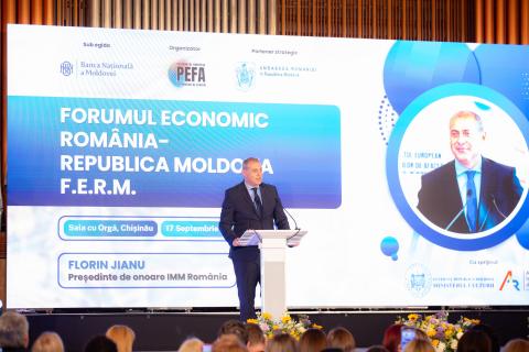The first edition of the Romania-Republic of Moldova Economic Forum (F.E.R.M.), a major event organised by the European Businesswomen's Federation (PEFA), under the auspices of the National Bank of Moldova (NBM) and in partnership with the Embassy of Romania in Chișinău, brought together today in Chișinău, high-level officials, economic leaders, and entrepreneurs from both sides of the Prut River.