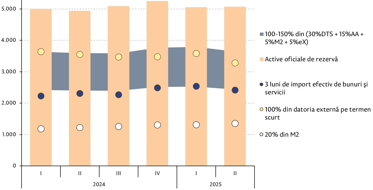 Pragul acceptat la nivel internațional în raport cu acest indicator este de 3 luni de importuri de bunuri și servicii.