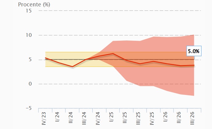 BNM prognozează că rata anuală a inflației va oscila în proximitatea țintei de 5,0 la sută și se va menține în intervalul de variație de ±1,5 puncte procentuale pe parcursul perioadei întregii perioade analizate.