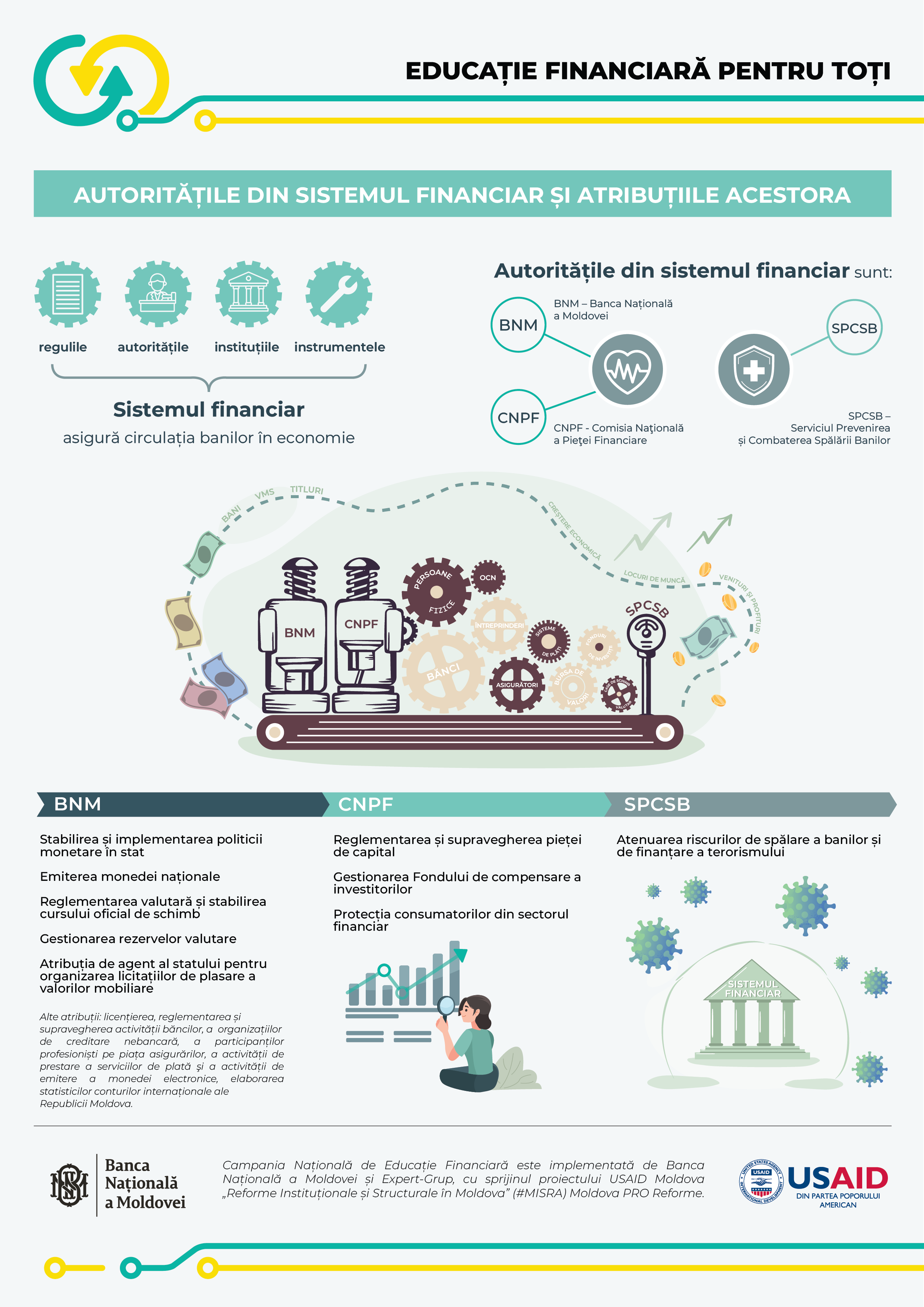 Astfel, autoritățile sistemului financiar creează mediul în care putem face plăți, investiții, putem să ne împrumutăm sau să facem economii cu încredere și în deplină siguranță.