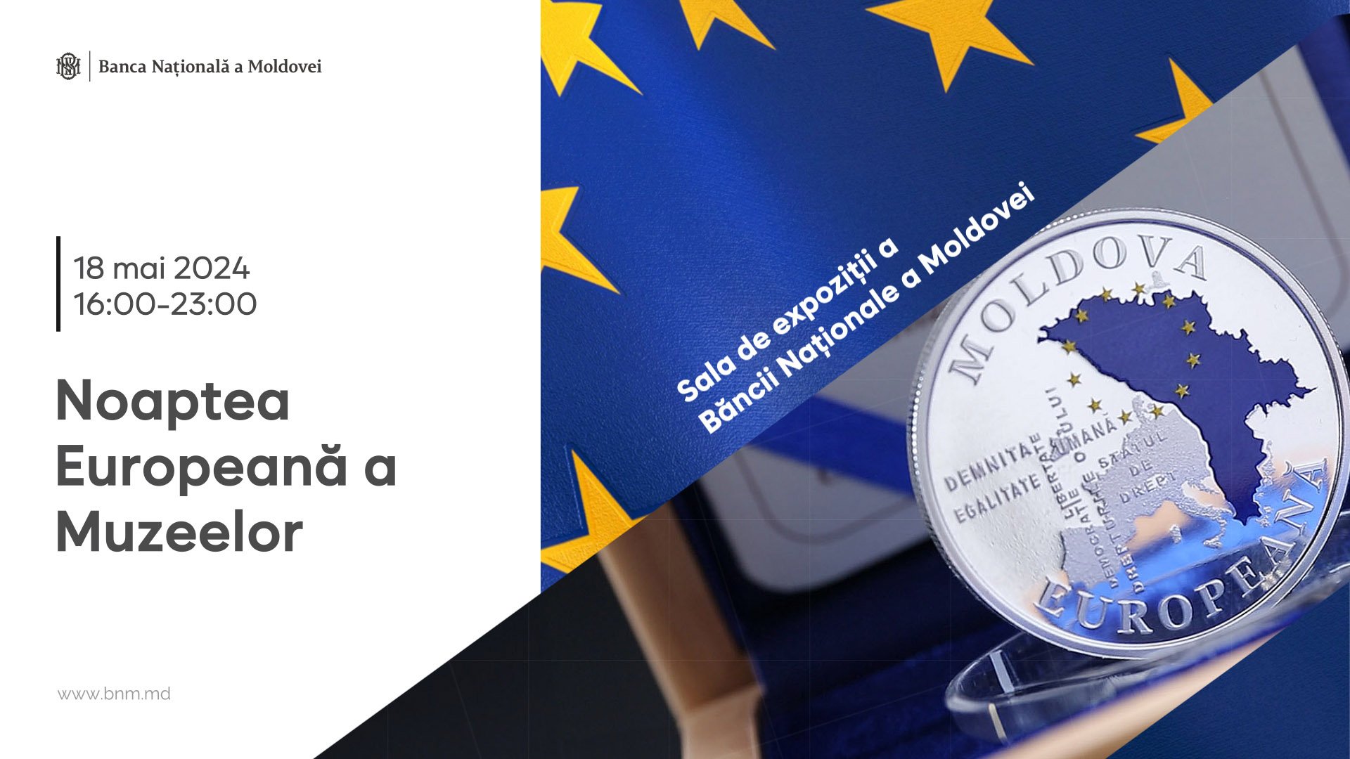 Evenimentul va avea loc sâmbătă, 18 mai 2024 și oferă o oportunitate rară cetățenilor de a explora sala de expoziții a BNM, punând în lumină evoluția monetară a Republicii Moldovei și contribuția sa la identitatea culturală europeană.