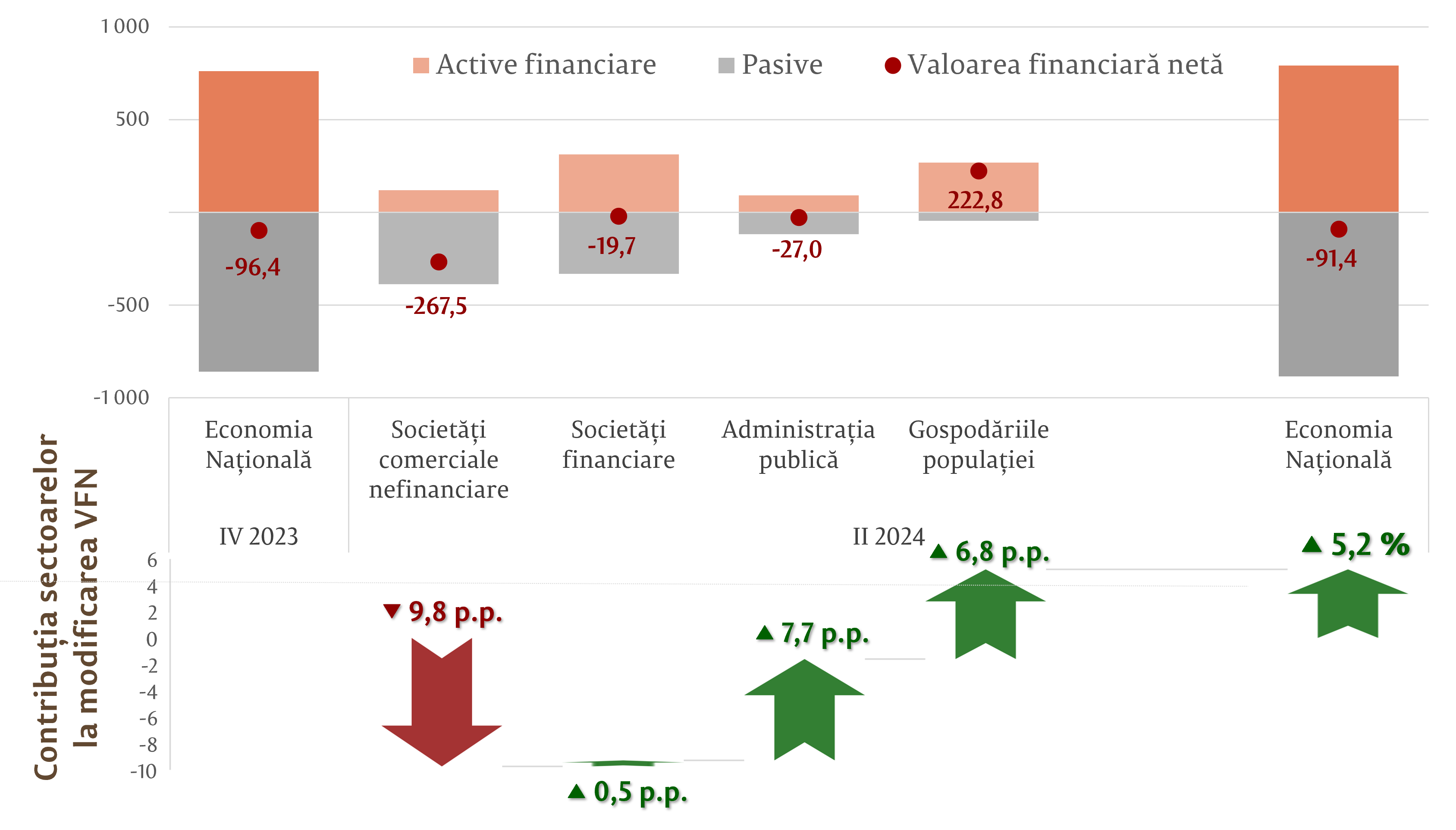 1 Valoarea financiară netă reprezintă diferența dintre totalul activelor financiare și totalul pasivelor financiare, înregistrate de un anumit sector al economiei naționale.