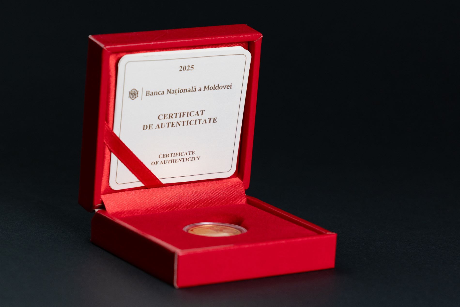 Fiecare exemplar este ambalat în capsule de metacrilat transparent și în cutie de prezentare, fiind însoțit de un certificat de autenticitate ce poartă semnătura guvernatorului BNM. Certificatul include un cod QR, care permite accesul direct la informațiile despre caracteristicile monedei, disponibile pe site-ul oficial al Băncii Naționale.