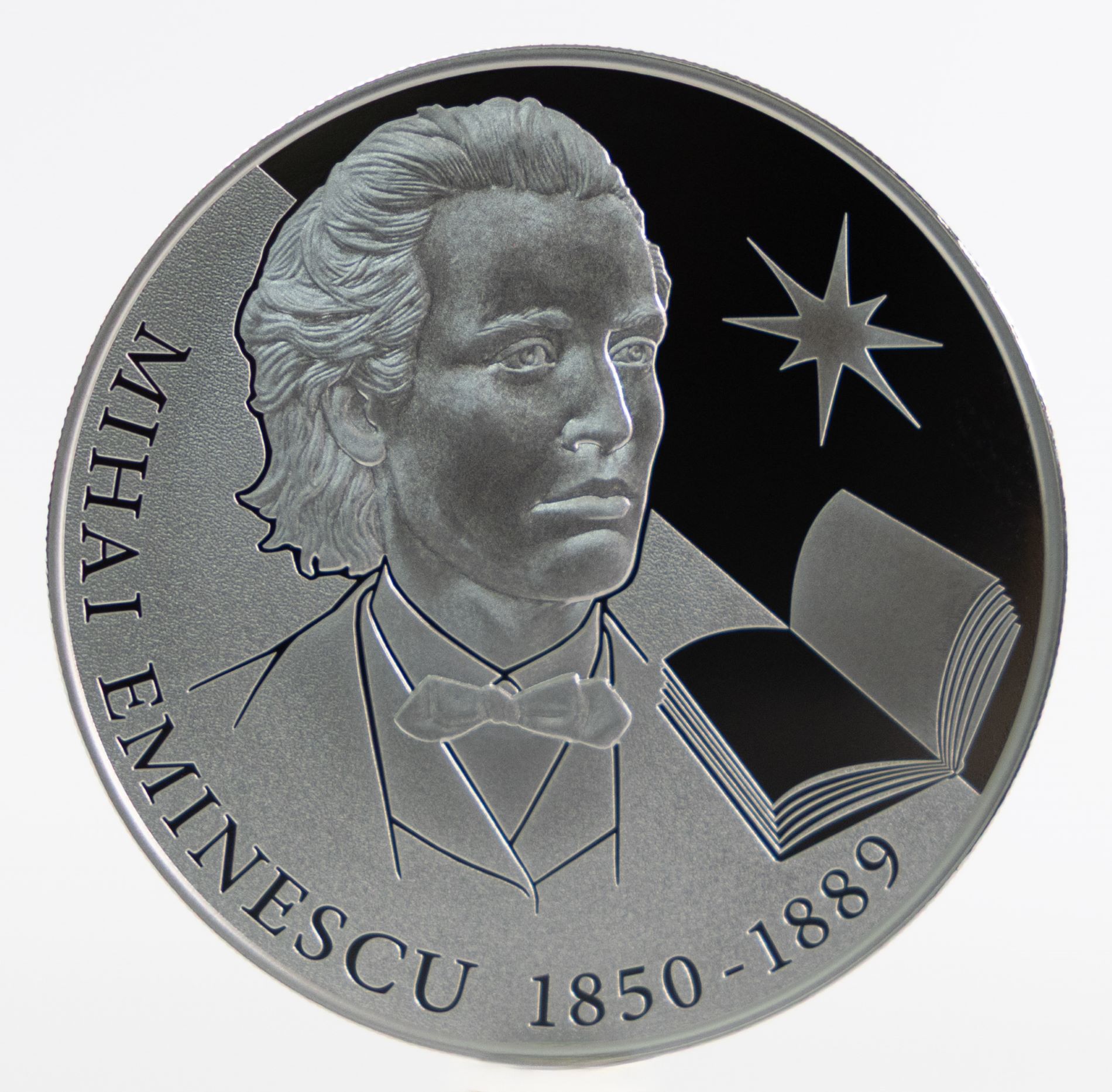 Această emisiune monetară este dedicată uneia dintre cele mai emblematice figuri ale literaturii române - poetul, prozatorul și jurnalistul Mihai Eminescu - și aduce un omagiu contribuției sale remarcabile la patrimoniul cultural românesc.