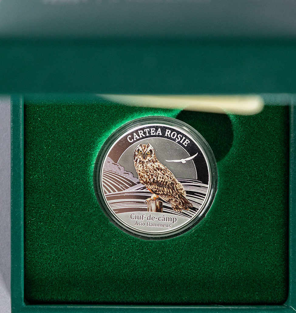 Moneda comemorativă „Ciuf-de-câmp (Asio flammeus)” este lansată cu ocazia Zilei Internaționale a Conservării Naturii, marcată la 28 iulie, un eveniment dedicat conștientizării asupra importanței protejării mediului înconjurător și a biodiversității. Moneda este bătută în argint, are un design color, valoarea nominală de 50 lei și un tiraj de 500 unități.