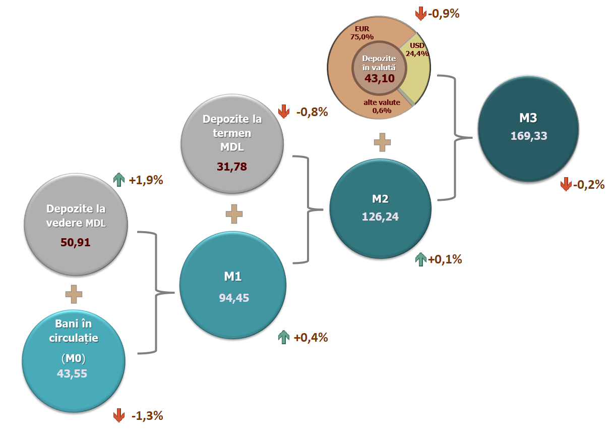 4. Masa monetară M1 include banii în circulație (M0) și depozitele la vedere în lei moldovenești ale rezidenților.