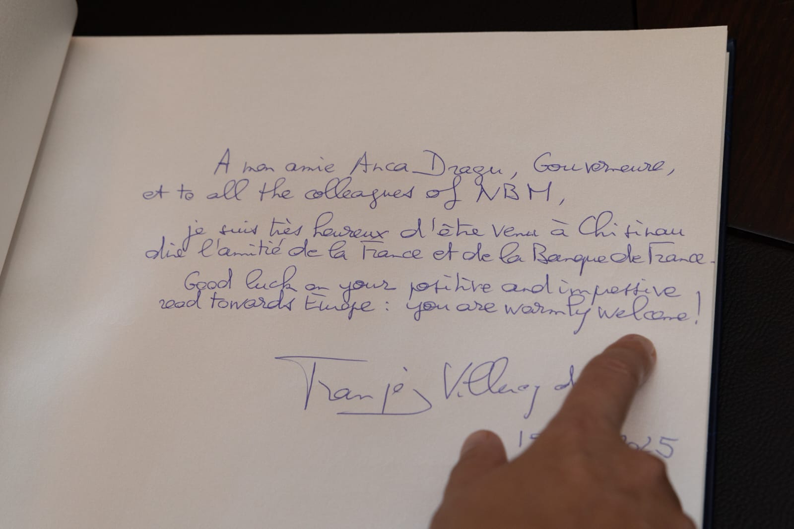 „În această epocă a schimbărilor tehnologice profunde, băncile centrale trebuie să rămână ancore de încredere și, totodată, promotori ai inovației. Lucrând împreună, putem transforma provocările tehnologice în oportunități și putem construi pentru Europa și pentru Moldova un viitor financiar mai integrat, mai stabil și mai inovator. Moldova, asemenea maestrului Eugen Doga, care a creat o capodoperă ce face parte din patrimoniul UNESCO, își construiește viitorul pe o identitate culturală solidă și pe infrastructuri moderne. Franța și Banca Franței vor face tot posibilul să vă sprijine pe acest drum”, a declarat guvernatorul Băncii Franței, în cadrul primei sale vizite în Republica Moldova.