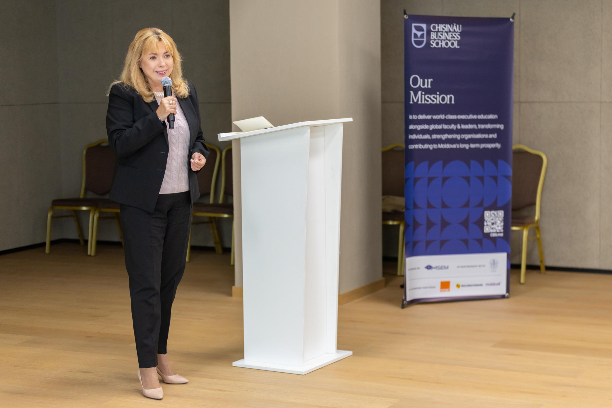 Evenimentul a reunit reprezentanți ai mediului academic, financiar-bancar și de afaceri, printre care Alina Prahoveanu, Președinta Asociației Directorilor Independenți din România, Ana Bobircă, reprezentantă Bucharest Business School, precum și reprezentanți ai Chișinău Business School și ai Academiei de Studii Economice din Moldova.