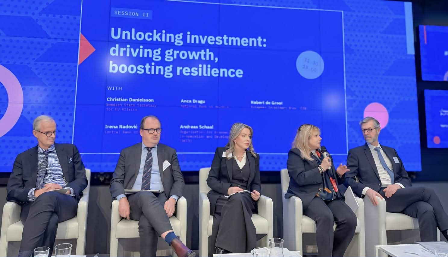 În cadrul evenimentului, guvernatoarea BNM a oferit o intervenție amplă în sesiunea dedicată investițiilor și creșterii economice „Deblocarea investițiilor: impuls pentru creștere și consolidarea rezilienței”, unde a evidențiat progresele Republicii Moldova în consolidarea stabilității financiare, accelerarea integrării europene și modernizarea infrastructurii digitale.