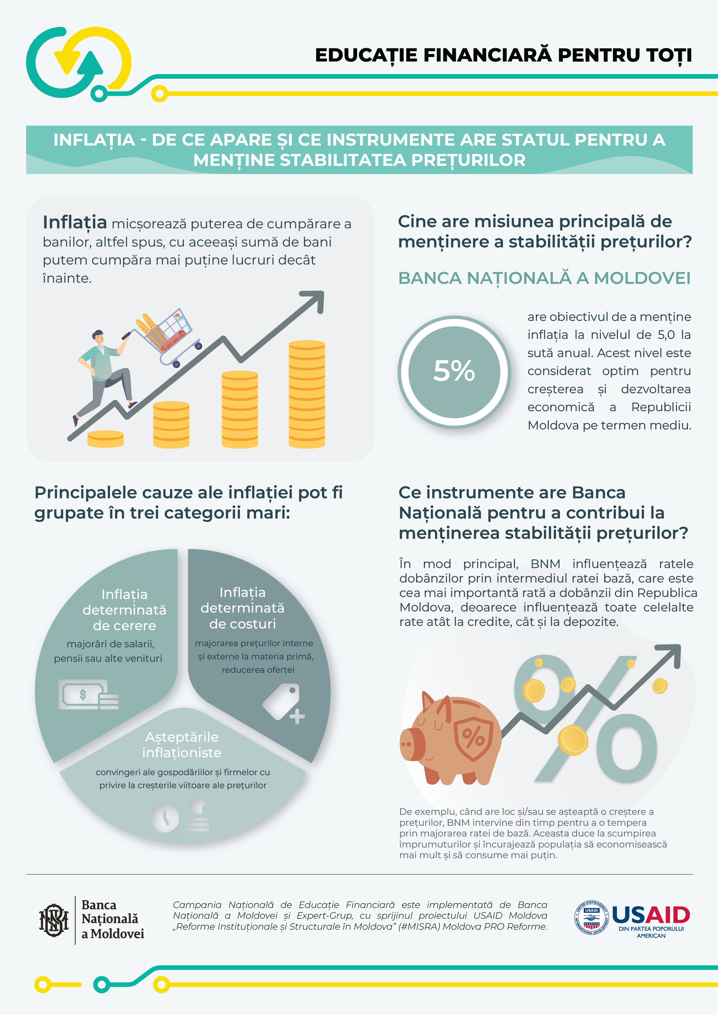 Pentru asigurarea și menținerea stabilității prețurilor pe termen mediu, Banca Națională a Moldovei (BNM) are obiectivul de a menține inflația la nivelul de 5,0 la sută anual cu o posibilă abatere de ± 1,5 puncte procentuale. Acest nivel este considerat optim pentru creșterea și dezvoltarea economică a Republicii Moldova pe termen mediu.