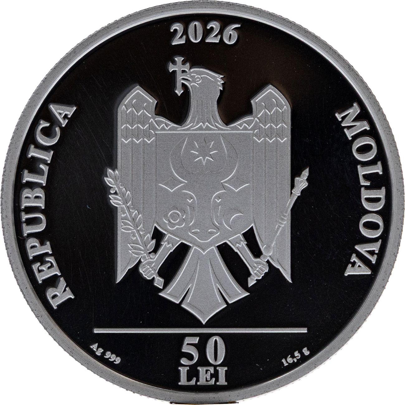 • anul de emisiune „2026”, inscripția „REPUBLICA MOLDOVA” în arc de cerc