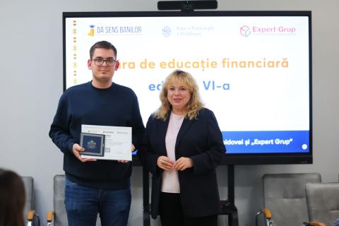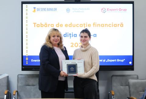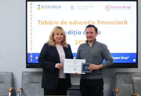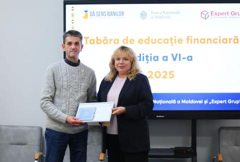 La Banca Națională a Moldovei a avut loc ceremonia de înmânare a certificatelor de merit și a premiilor câștigătorilor quiz-ului din cadrul „Taberei de educație financiară”, organizată de banca centrală și Centrul Analitic Independent „Expert-Grup” în luna august 2025.