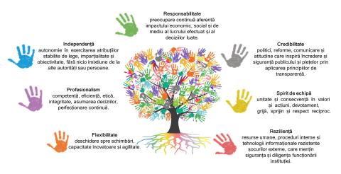 Cultura organizațională a Băncii Naționale este axată pe un set de valori, care sunt fundamentul la ceea ce reprezintă echipa BNM și cum membrii echipei își îndeplinesc atribuțiile de bază.