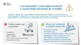 Banca Națională a Moldovei recomandă cetățenilor să se informeze înainte de a face investiții, astfel încât să evite schemele de fraudă care iau amploare în era tehnologiilor informaționale, la nivel mondial, țara noastră nefiind o excepție.