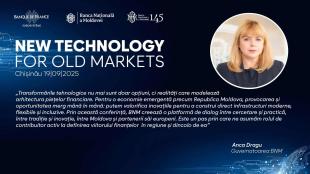 Evenimentul, intitulat „New Technology for Old Markets”, este organizat de BNM, în parteneriat cu Banca Națională a României și Banca Franței, și se va desfășura la Chișinău, pe 19 septembrie 2025, în format hibrid (participare fizică și online).