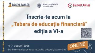 Banca Națională a Moldovei anunță deschiderea înregistrărilor pentru cea de-a VI-a ediție a „Taberei de educație financiară”, organizată online în parteneriat cu Centrul Analitic Independent „Expert-Grup”, în perioada 4–7 august 2025. Evenimentul este destinat tinerilor cu vârsta de minimum 17 ani și oferă o experiență interactivă și accesibilă de familiarizare cu noțiunile financiare de bază.