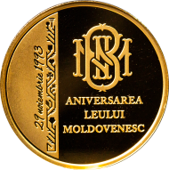 • надпись заглавными буквами «ANIVERSAREA LEULUI MOLDOVENESC»