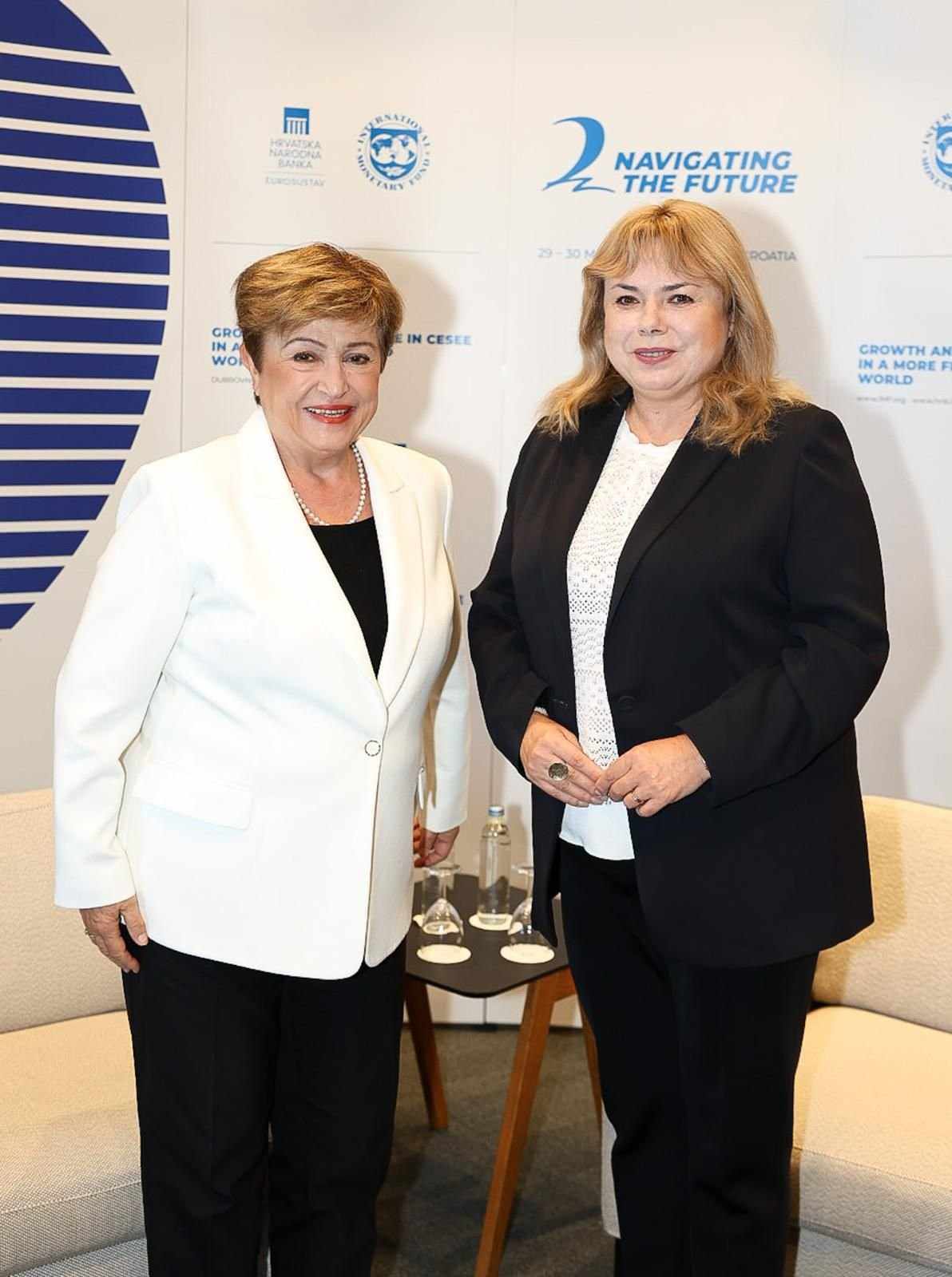 В рамках международной конференции высокого уровня, организованной Международным валютным фондом (МВФ) и Национальным банком Хорватии в Дубровнике, президент Национального банка Молдовы Анка Драгу провела переговоры с Кристалиной Георгиевой, директором-распорядителем МВФ.