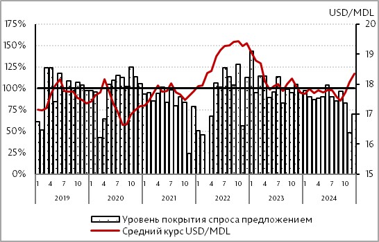 Средний курс молдавского лея к доллару США в декабре вырос на 1,6%, до 18,3569 по сравнению с 18,0651 в ноябре. Согласно значениям курса на конец месяца он также увеличился на 1,1%3.