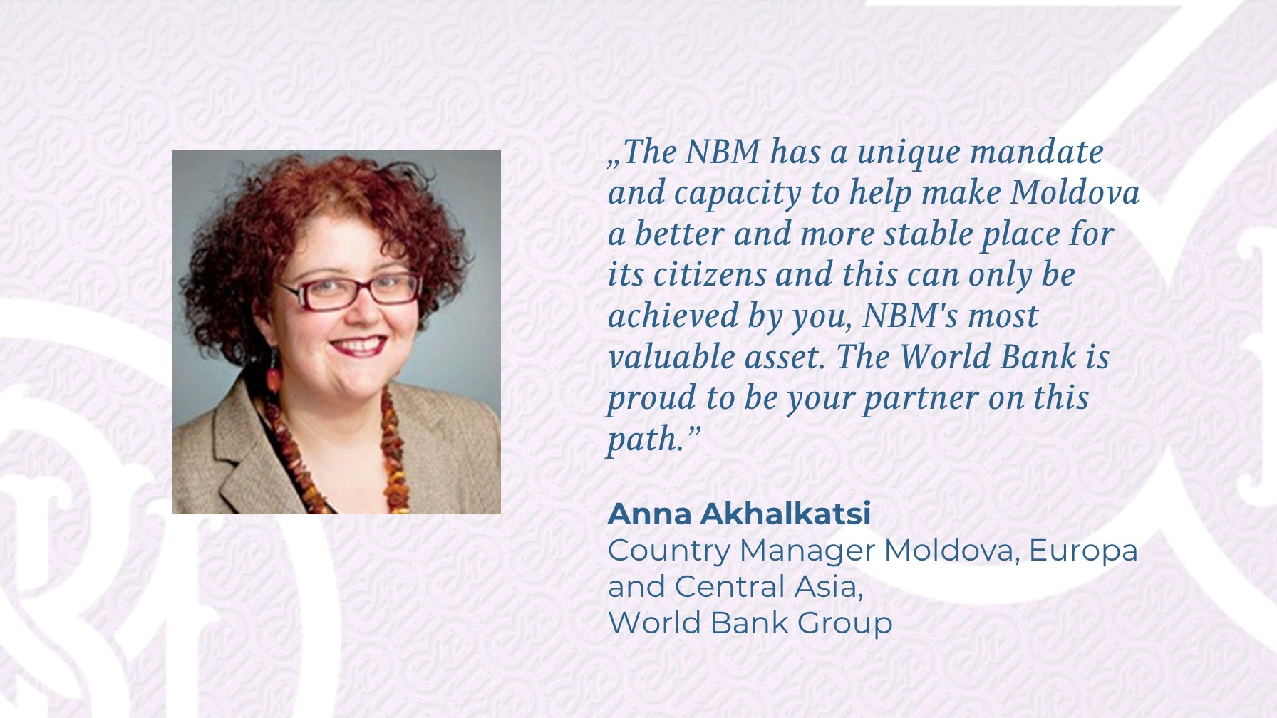 #30aniBNM// Congratulatory message from Anna Akhalkatsi, Country Manager for Moldova, Europe and Central Asia, World Bank Group