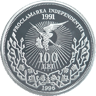 Commemorative coin "5th Anniversary of Proclamation of Independence of the Republic of Moldova", in circulation since November 13, 1996.