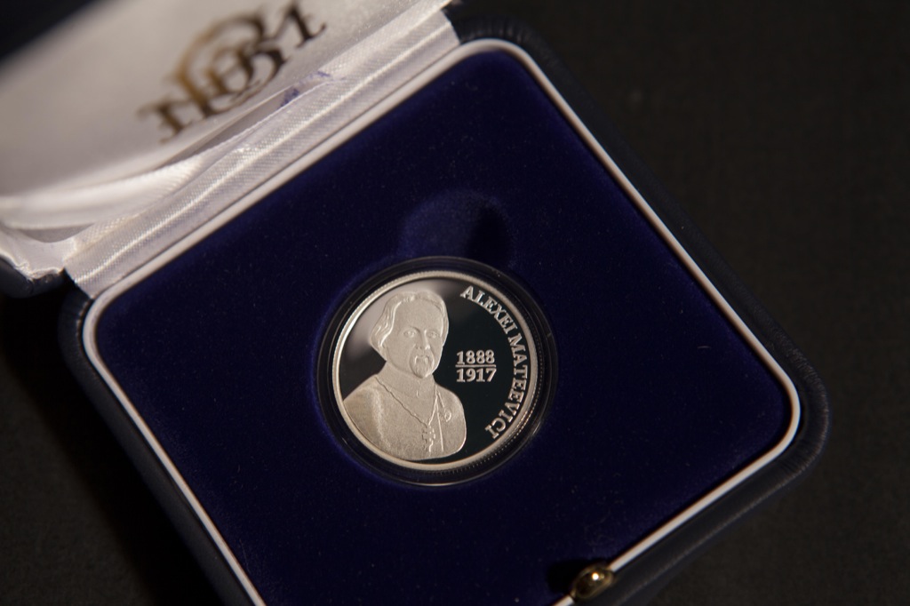 • on the right part, following the coin circumference - the inscription „ALEXEI MATEEVICI” is engraved in block letters.