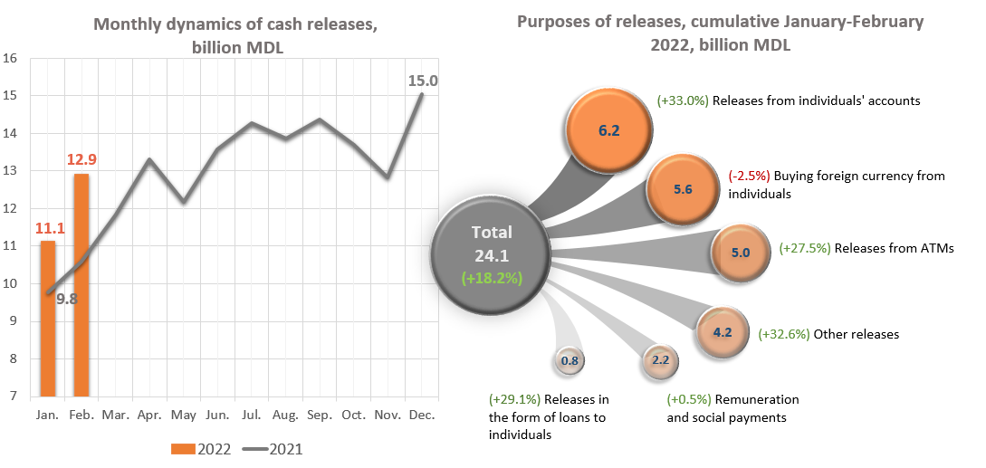It should be noted, that releases from ATMs had a significant share of 20.8% of total releases and increased in January - February 2022 by 27.5% compared to the same period of the previous year.