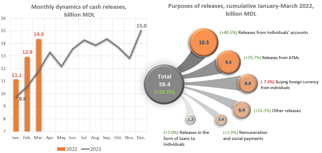 It should be noted that releases from ATMs had a significant share of 22.5% of total releases and increased in January - March 2022 by 39.7% compared to the same period of the previous year.