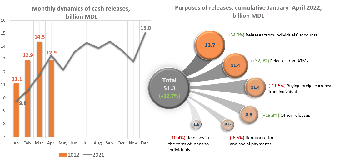 It should be noted that releases from ATMs had a significant share of 22.3% of total releases, increasing, in January - April 2022 by 32.9% compared to the same period of the previous year.