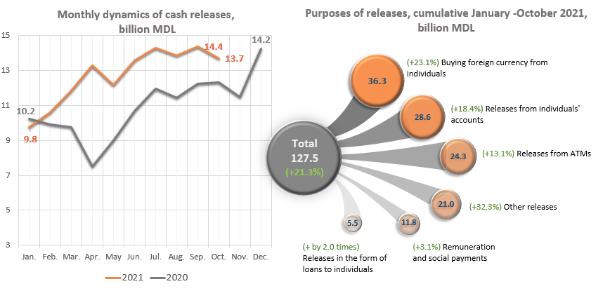 It should be noted, that releases from ATMs had a significant share of 19.1% of total releases and increased in January – October 2021 by 13.1% compared to the same period of the previous year.