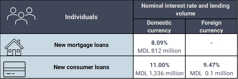 New loans1 granted in February 2026 amounted to MDL 6,722 million, of which 67.8% were contracted by businesses and individuals engaged in economic activities and 32.2% by individuals.