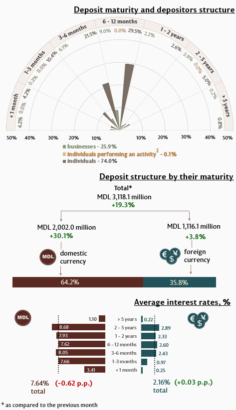 Individuals’ deposits amounted in the reference month to MDL 2,308.8 million, increasing by 27.5% as compared to the previous month (Infographic 2).