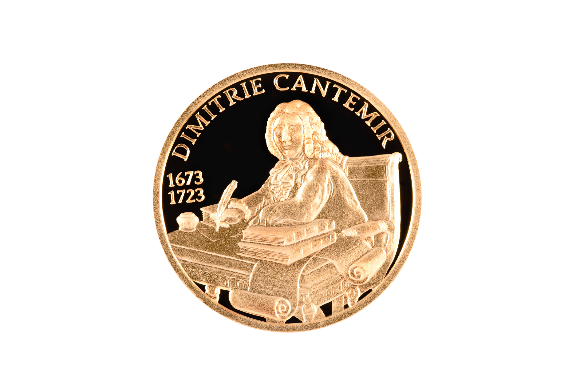 • on the upper part ,following the coin circumference- the inscription “DIMITRIE CANTEMIR” is engraved in block letters;