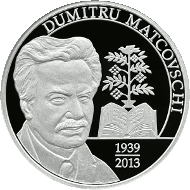 • on the upper part, following the coin circumference – the inscription “DUMITRU MATCOVSCHI” is engraved in block letters;