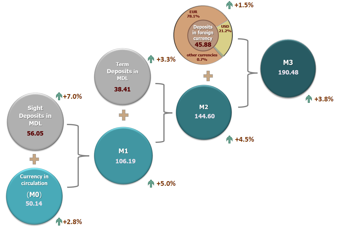 6. Money supply M3 includes money supply M2 and residents’ foreign currency deposits converted into MDL.