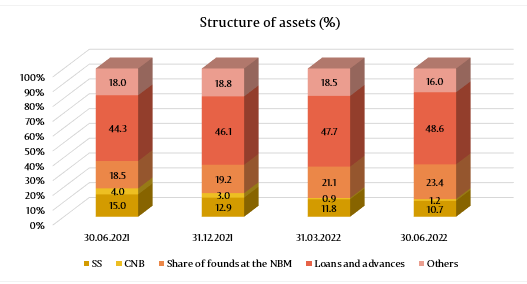 Total assets amounted to MDL 120.4 billion, increasing during the first semester of 2022 by 1.6% (MDL 1.9 billion).