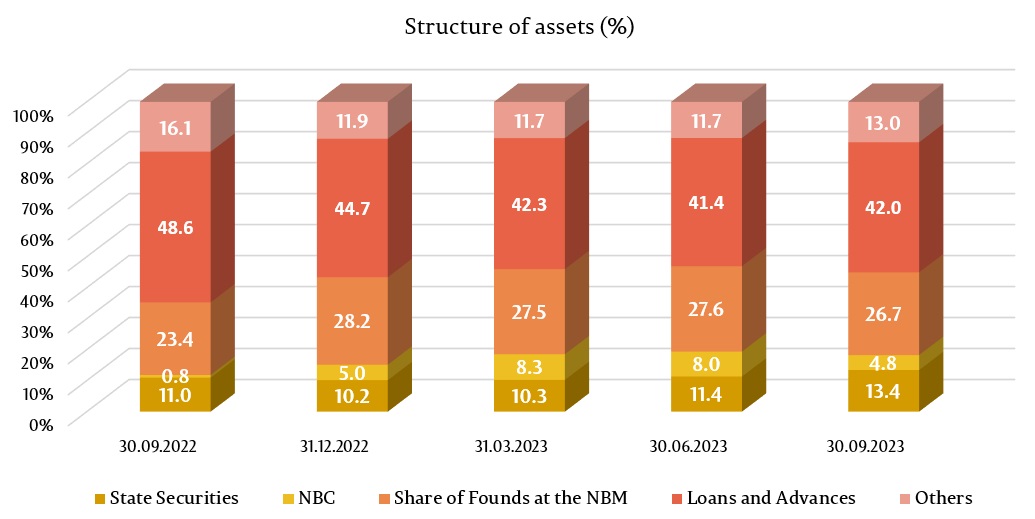 Total assets amounted to MDL 144.9 billion, increasing by 10.3% (MDL 13.5 billion) during the first nine months of 2023.