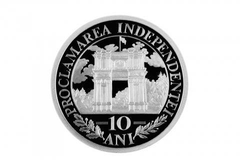 Commemorative coin "10th Anniversary of Proclamation of Independence of the Republic of Moldova", in circulation since August 28, 2001.