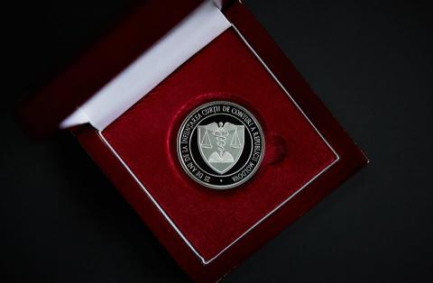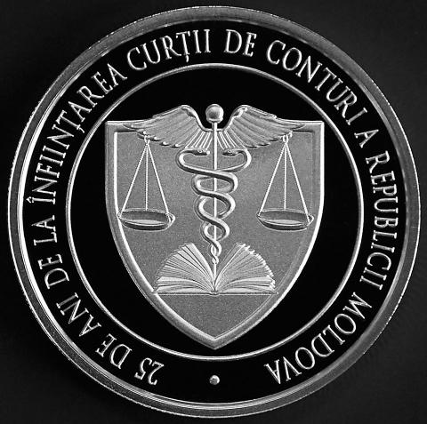 in exergue: the inscription „25 DE ANI DE LA ÎNFIINȚAREA CURȚII DE CONTURI A REPUBLICII MOLDOVA” is engraved in capital letters.
