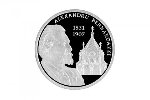 on the upper part - following the coin circumference, the inscription "ALEXANDRU BERNARDAZZI" and the years "1831-1907" are engraved in block letters.