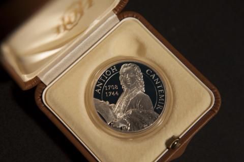 on the upper part ,following the coin circumference - the inscription “ANTIOH CANTEMIR” is engraved in block letters;