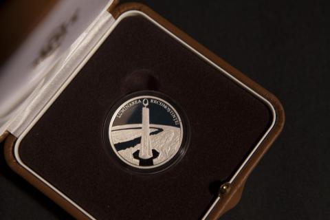 on the upper part, following the coin circumference – the inscription „LUMÎNAREA RECUNOŞTINŢEI” is engraved in block letters.