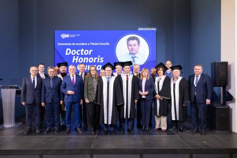 The honorary title of Doctor Honoris Causa was awarded to Mr. Mihnea Cosmin Costoiu, Rector of the National University of Science and Technology Politehnica Bucharest, in recognition of his contribution to the development of higher education, research, and international academic cooperation.